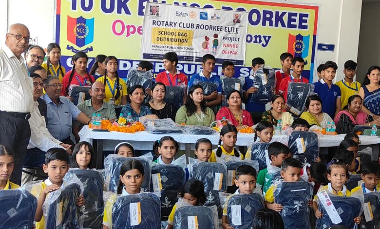 रोटरी क्लब रूड़की एलीट द्वारा किया गया स्कूल बैग का वितरण