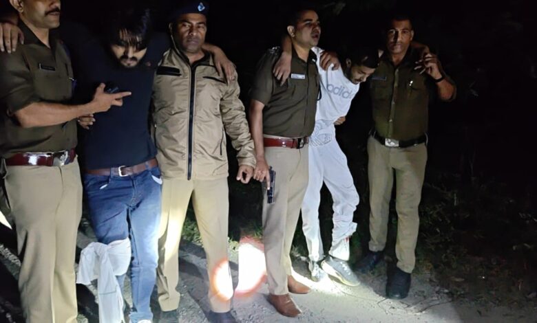 पुलिस ने भी तुरंत आरोपियों का पीछा किया। पुलिस से बचने के लिए आरोपियों ने अपनी स्कूटी काली मंदिर के निकट जंगल के कच्चे रास्ते पर उतारकर तेजी से भागने का प्रयास का किया। जंगल में करीब 100 मीटर अंदर जाकर आरोपियों की स्कूटी गिर गई। तभी आरोपियों ने जान मारने की नियत से पुलिस पर फायरिंग की। पुलिस की जवाबी कार्रवाई में दो आरोपियों को लगी गोलीरू पुलिस की तरफ से भी आत्मरक्षा में जवाबी फायरिंग की गई। इस दौरान दो आरोपियों के पैर में गोली लगी। हालांकि इस बीच एक आरोपी मौके से भागने में कामयाब हो गया। गोली लगने के बाद पुलिस की गिरफ्त में आए दोनों आरोपियों के पास से दो तमंचे, चार जिंदा और कारतूसों के दो खोखे बरामद हुए। पुलिस पूछताछ में आरोपियों की पहचान सोहेल खान और सानू के रूप में हुई। एसएसपी अजय सिंह ने बताया कि दोनो घायल आरोपियों को प्राथमिक इलाज के लिए नजदीकी अस्पताल में भर्ती कराया गया है। साथ ही आरोपियों के खिलाफ पुलिस टीम पर जानलेवा हमला करने और अवैध हथियारों की बरामदगी के संबंध में मुकदमा पंजीकृत किया गया है।