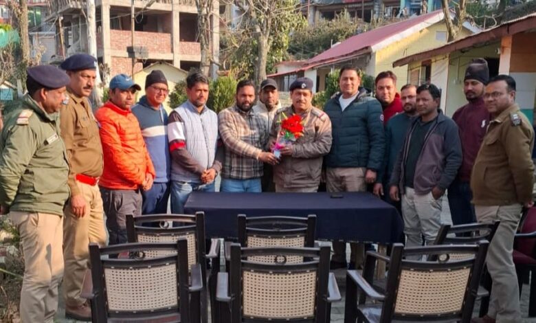 रुद्रप्रयाग। ऊखीमठ थाने के नवनियुक्त प्रभारी निरीक्षक मनोज नेगी ने विधिवत कार्यभार ग्रहण कर लिया है। इस दौरान उन्होंने थाने पर नियुक्त में अधीनस्थ स्टाफ के साथ एक परिचयात्मक गोष्ठी आयोजित की, जिसमें उन्होंने पुलिसिंग की प्राथमिकताओं और कानून व्यवस्था को लेकर आवश्यक दिशा-निर्देश दिए। उन्होने बीट पुलिसिंग सहित उच्चाधिकारियों की ओर से दिए गये निर्देशों का अनुपालन करने सहित उत्तराखण्ड पुलिस के ध्येय वाक्य मित्रता सेवा सुरक्षा पर जोर दिये जाने के निर्देश दिये। प्रभावी सूचना तंत्र विकसित करने के साथ ही नशे का कारोबार करने वालों पर नकेल कसने को लेकर टीम भावना के तौर पर कार्य करने के निर्देश दिये। जनता और व्यापार मण्डल के साथ समन्वय पर जोर देते हुए स्टाफ के साथ बैठक के उपरान्त, प्रभारी निरीक्षक ने ऊखीमठ व्यापार मण्डल के पदाधिकारियों और स्थानीय नागरिकों के साथ संवाद किया।