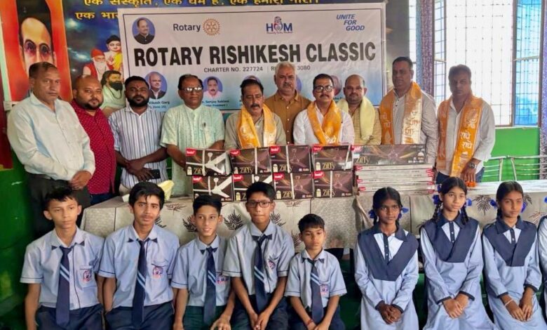 रोटरी ऋषिकेश क्लासिक क्लब ने स्वर्गीय मनमोहन सकलानी की स्मृति मैं राजश्री चिल्ड्रन एकेडमी को आठ पंखे दिए